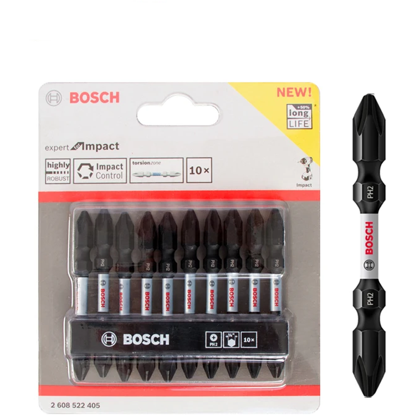 Bosch PH2 Impact Double Ended Screwdriver Bit Set 10Pcs 65MM (2608522405)